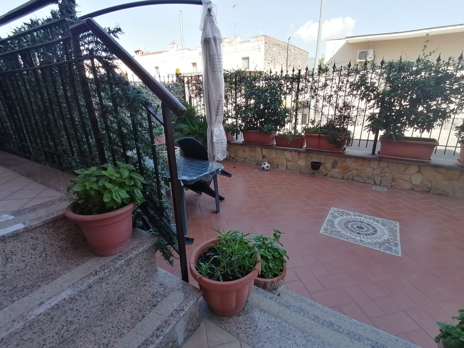 La casa presenta un doppio accesso, uno dal vano scala, l altro indipendente tramite spazio antistante di proprietà, è così composta: ingresso ampio, studio, sala da pranzo con cucinino, 2 camere da letto, di cui la principale con camera guardaroba interna, 2 bagni, ripostiglio, spazio esterno di metri 50 circa, posti auto e box.